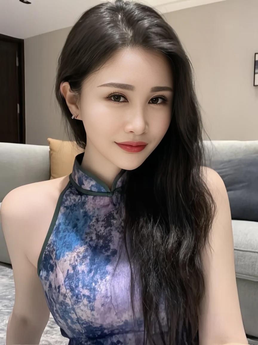 进到门见小姐姐穿经典连衣裙加黑丝高跟,样子有点网红脸,那种风韵犹存的美熟女,看身材不错,胸挺大的,上